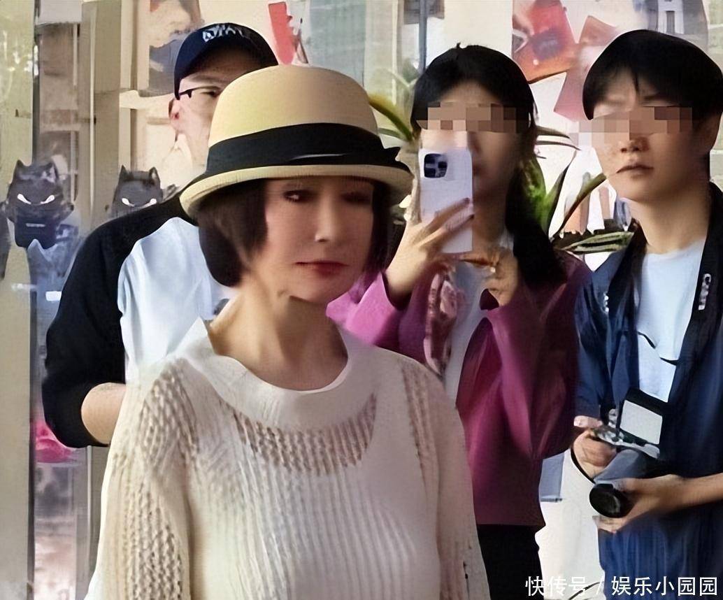 然而镜头一转到怼脸角度,画风却变得微妙起来。在路人的合影和视频截图中,潘迎紫的脸上竟然找不到一丝皱纹。皮肤平滑得连一点瑕疵都没有,这种质感与她脖子上松垮的皮肤形成了惨烈的对比。这种一脸紧绷的背后,显然离不开高频次的医美干预。